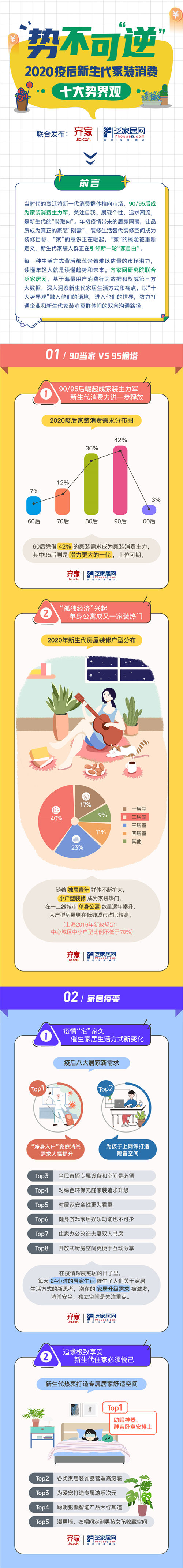 为了深入洞察年轻一代的家居生活方式和痛点,齐家网研究院联合泛家居网共同发布《势不可“逆”——2020疫后新生代家装消费十大势界观》,洞察致力抓住青年一代正在掀起和即将掀起的家装消费趋势,用数据驱动和优化家居全渠道消费体验。